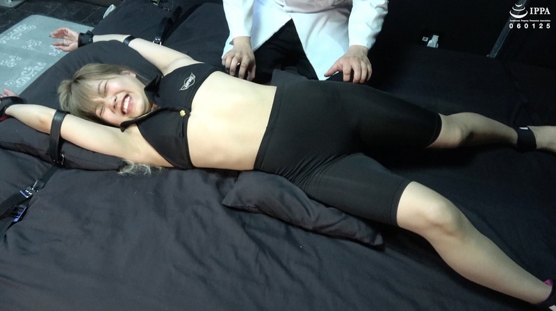 ここまでで判明&開発した弱点をうつ伏せと仰向け、両方の四肢拘束で全部をくすぐっていきます。 まずはうつ伏せ、腋の下、脇腹はもちろん、判明した首元、各所皮膚を引っ張ってのくすぐりに、麻衣奈ちゃんは大笑いとジタバタ暴れが止まりません。頑張っても閉じられない腋も、動く限りでジタバタする足も可愛いポイント! くすぐり棒を垂らしての背中攻撃に悶えたり、膝裏に挟まって爆笑するのも弄ばれてる感がとてもよいです!…